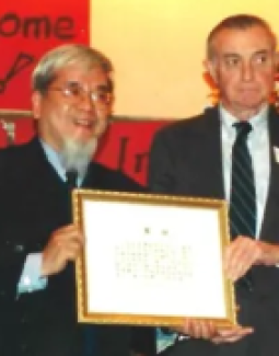 1991年3月15日,「紀念南京大屠殺受難同胞聯合會」成立,在美國新澤西州登記為非營利教育團體,享有各州免稅地位。陳憲中(左)參與創立,1992年起曾擔任該會會長職務。右為馬吉牧師兒子大衛·馬吉。邵子平供圖
