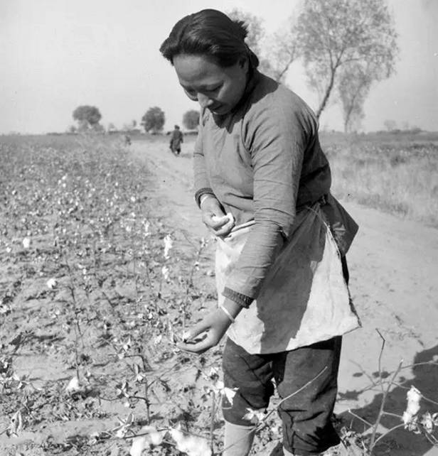 1940年代,南京,摘棉花。海达·莫里循/摄。