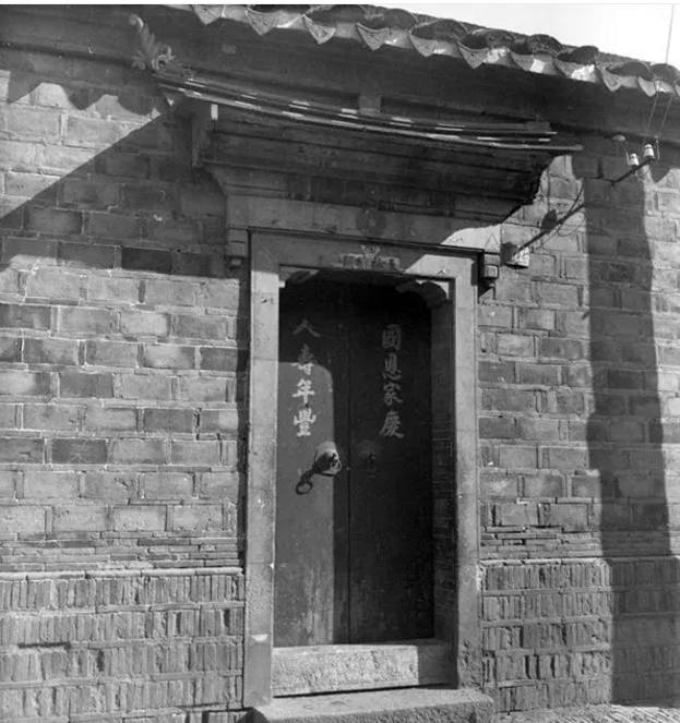 1940年代,南京,一户民居家的正门,这户已经用上电了。海达·莫里循/摄。