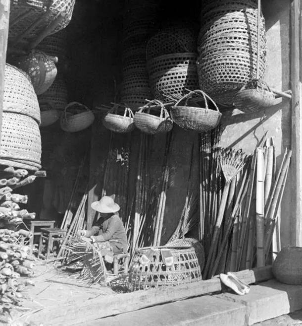 1940年代,南京,做花折伞的店铺。海达·莫里循/摄。