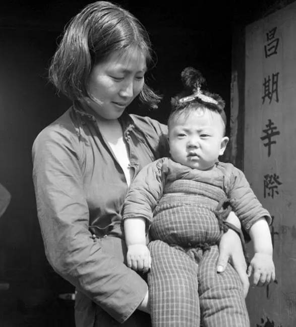 1940年代,南京,一对母子。海达·莫里循/摄。