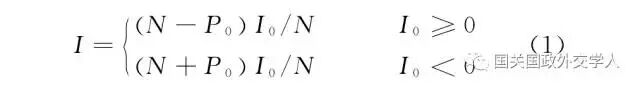 其中,I為該事件在兩國關係位於P0時的影響力分值;N為兩國關係分值變化範圍絕對值,兩國關係分值的變化範圍為[-N,N],本文為[ -9,9];P0為事件發生時兩國關係的初始值,如需考慮2017年5月某事件的外交影響,則初始值為2017年4月時兩國關係分值;I0為該事件在事件分值表中分值。