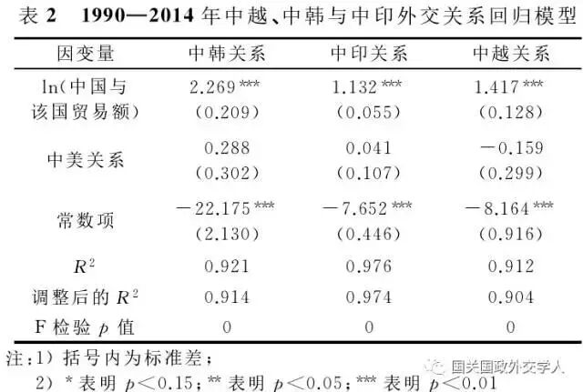 下文繼續分析中國與越南、韓國和印度的外交關係。由於這3個國家與日本情況不同,不存在與中國的經濟權力轉移問題,因此下文將主要分析這3個國家與中國的貿易和中美關係對這3個國家與中國關係的影響。