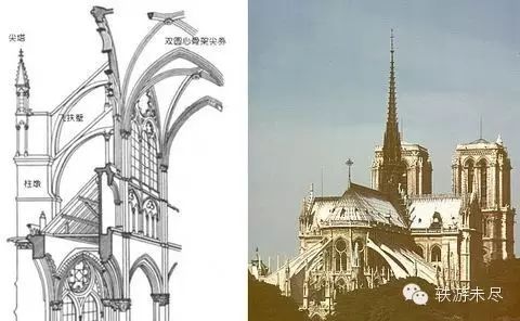 于是当时的人们就想把教堂建高,造的高,才能越加的接近上帝。原来希腊、罗马、拜占庭式哪些大圆顶通通不能要。因为顶重,就要用又厚又重的石墙去支撑,从而导致建筑高不起来。改用尖塔,为了让建筑更高,还发明了飞扶壁。