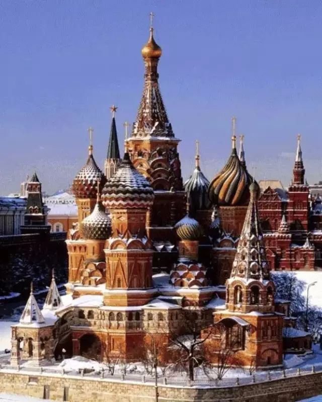 如何辨认拜占庭风格,主要是看它的顶。和罗马式一样,在建筑上加一个大圆顶,但风格又有所不同。罗马式直接加个半圆,而拜占庭式则是在半圆的底部略微内收,就像是一个洋葱头。