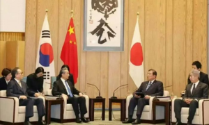 臺灣人只崇拜日本生活中的「解衣文化」,卻不瞭解日本文化常見的視野高度,總是來自中華文化,因此,大陸、日本與韓國三國外長會議在東京舉行,現場會議廳卻高掛很難辨識的「解衣」二字,這幅書法出自日本名家高木聖雨,有人不禁懷疑:難道這是日本大張旗鼓,想把情色風光西傳中韓?這種幽默只有臺灣人想得出來。