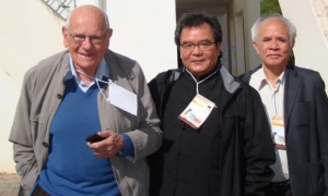 (圖片說明:弗弘索.鄔達(François Houtart)(左),攝於突尼斯世界社會論壇。 圖片來源:作者提供。)