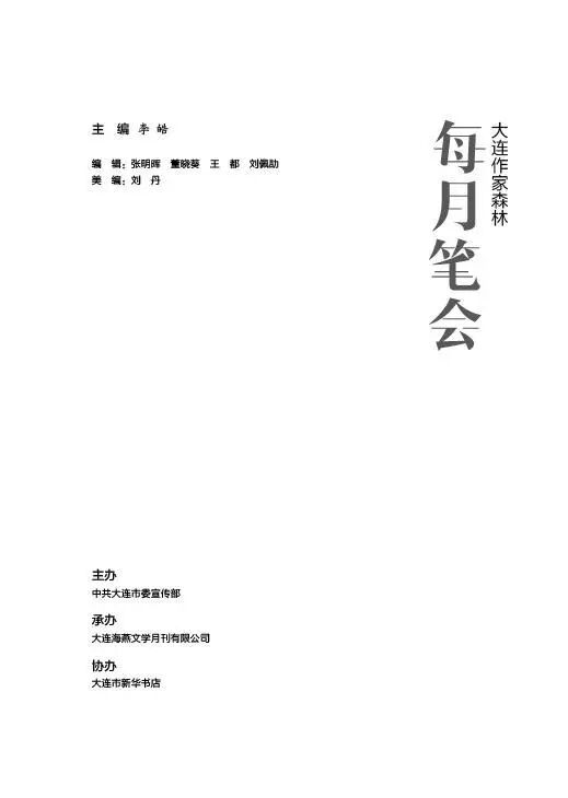 随着大连作家森林“每月笔会”活动的精彩亮相,《大连作家森林·每月笔会》文学内刊日前正式出版发行。