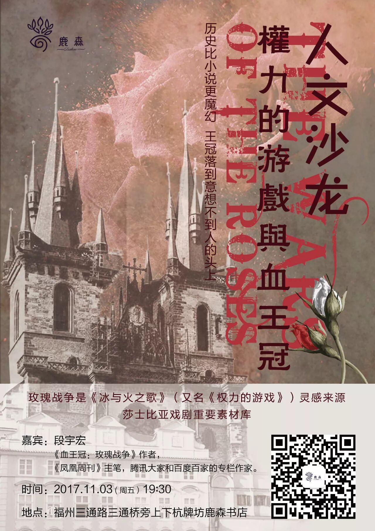 扫描海报上的“鹿森书店”二维码,查看活动详情或报名
