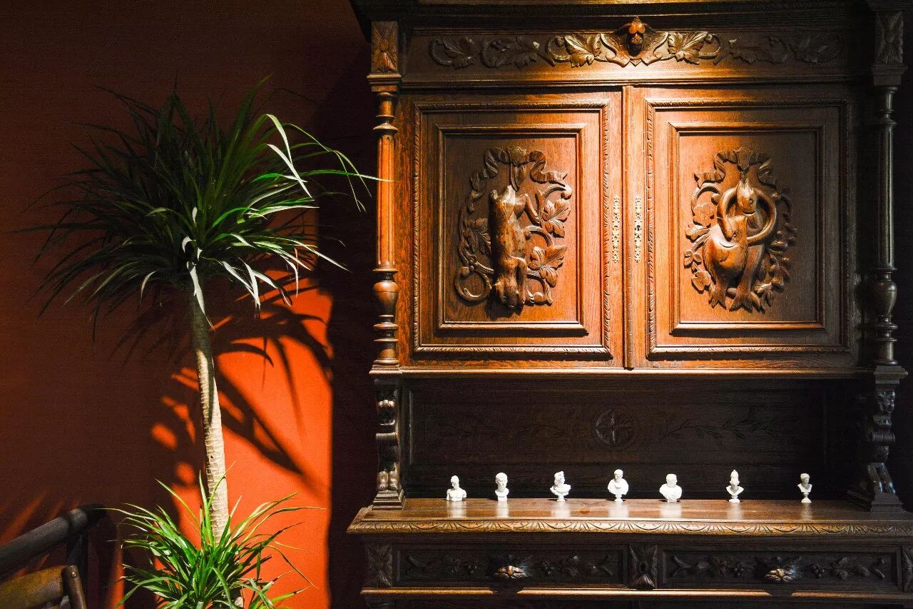 古董家具的雕花十分精细。只要你细细观察,就能发现书店放置了许多古董家具,包括客人的座椅。