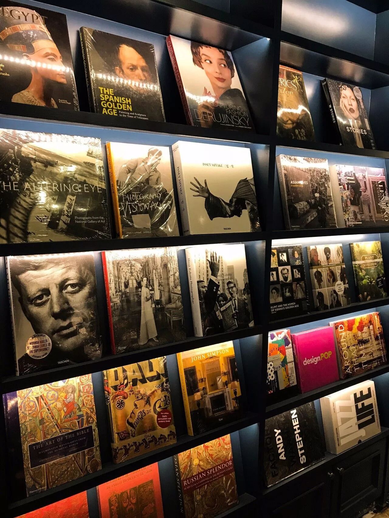 穿过客座区,有两面高大的书墙。两列书架在指引二楼方向的同时,将书籍摆放区与书店侧门分隔开,流连在此的书虫们可以避免外界的干扰。两边分列装帧考究的艺术画册,例如译林出版社“伟大的博物馆”系列丛书,以及许多严肃华文小说。