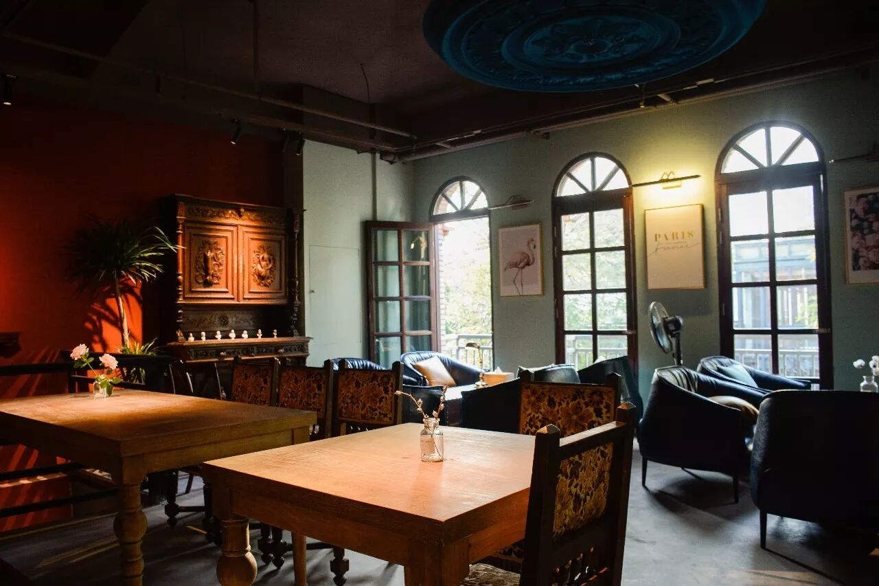 虽然外面街道是一派中式古典风韵,可鹿森门里却是复古欧式风格。柔和的赭蓝色营造出静谧的氛围,和这样的颜色相得益彰的,是印入眼帘的精致陈设。