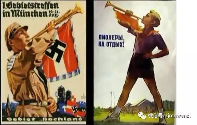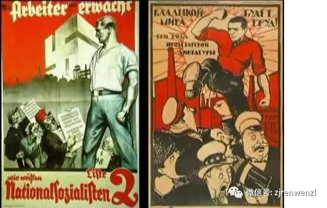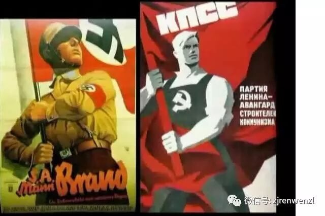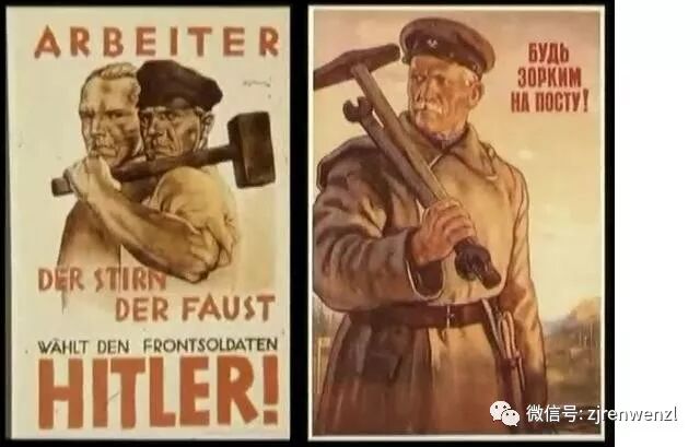二是纳粹时代的宣传画和斯大林时代的宣传画被放在一起比较,出奇的一致和雷同,看上去就是抄袭。